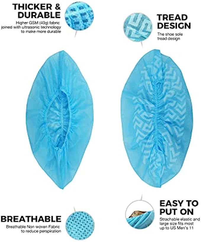 [100 Count] Shoe Covers Disposable Non Slip, Large Foot Covers for Shoes Disposable, Contractors Guards, Floor and Carpet Protectors Shoe Coverings, One Size Fits Most