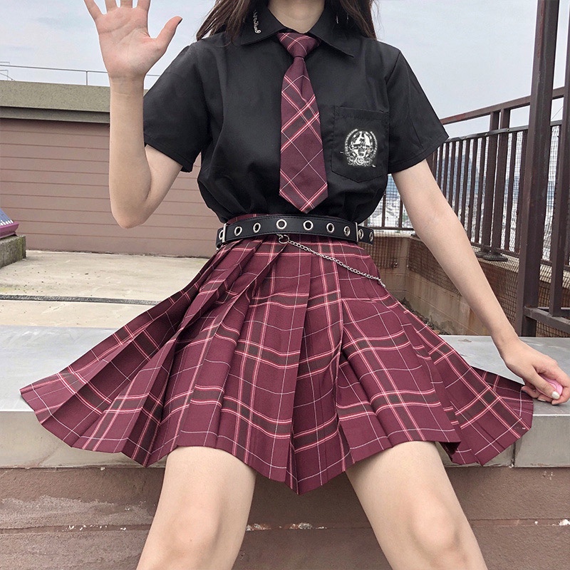 『DuDD』少女JK 日系正統制服 學院風洋裝百褶裙 格紋短裙送領結 皓海短袖襯衫 女 國中制服套裝 水手服 山吹 電競