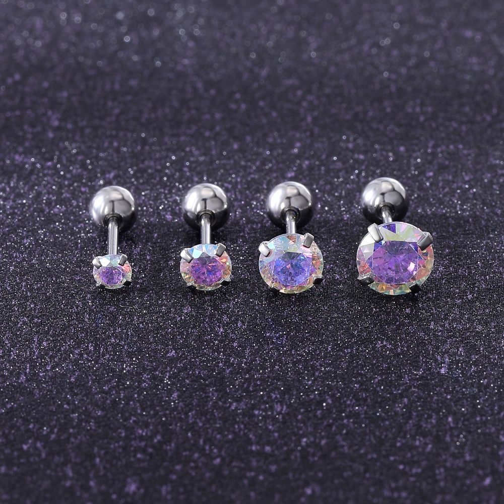 1 Pc 3/4/5/6MM Stainless Steel Round Stud Earrings Gold Crystal Cartilage Stud Earring Tragus Conch Helix Piercings