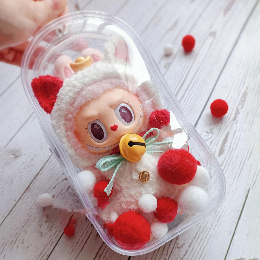 19cm Rabbit Pvc Storage Pouch Mystery Box Thicken Transparent Storage Case Organizer Box Double Zipper Keychain Bag Doll Bag
