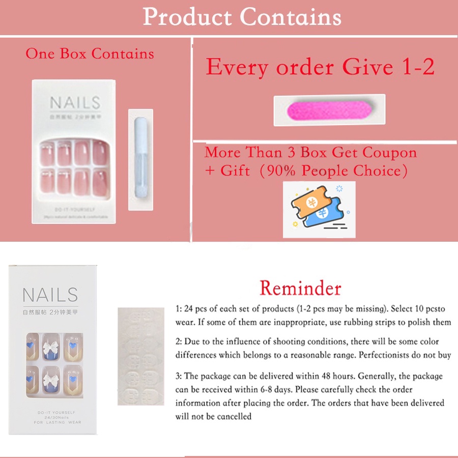 24pcs Acrylic Nails Fake Nails Set with Glue False Nails Long Nail Fake Nails with Design Art Party DIY COD