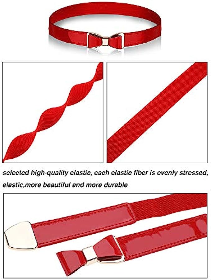buckle closure Dry Cloth Clean Good elasticity: this belt is approx. 25.6 inches/ 65 cm long, it has good elasticity and can be stretched to about 31.5 inches/ 80 cm, suitable for most women and girls' waist Skinny belt: belt width is 0.8 inch/ 2 cm, and the decorative bow is 1.2 inches/ 3 cm wide, the skinny design makes the belt elegant and beautiful, which is a nice accessory for dress Easy to put on: its metal clasp allows you easily put it on and off, and the elastic band brings you comfortable experience; Material: faux leather, elastic band and metal buckle Fashion accessories: use it to change your waist line and improve your overall styling, the belt can go well with you blouse, dress, skirt, jeans or sweater, making you more attractive Various styles: coming with various styles skinny waist belt as pictures shown, can meet your needs in the daily life, it suitable for daily wearing or attending an important occasion