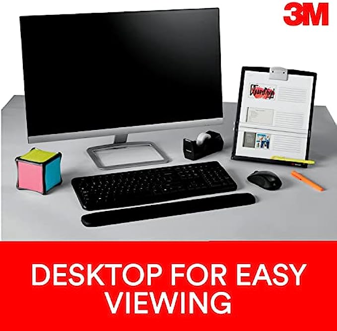 3M Desktop Document Holder Copy Holder, Adjustable Clip Holds Portrait and Landscape Documents for Easy Viewing, Bottom Ledge Has Lip to Keep up to 150 Sheets Securely in Place, Black (DH340MB)