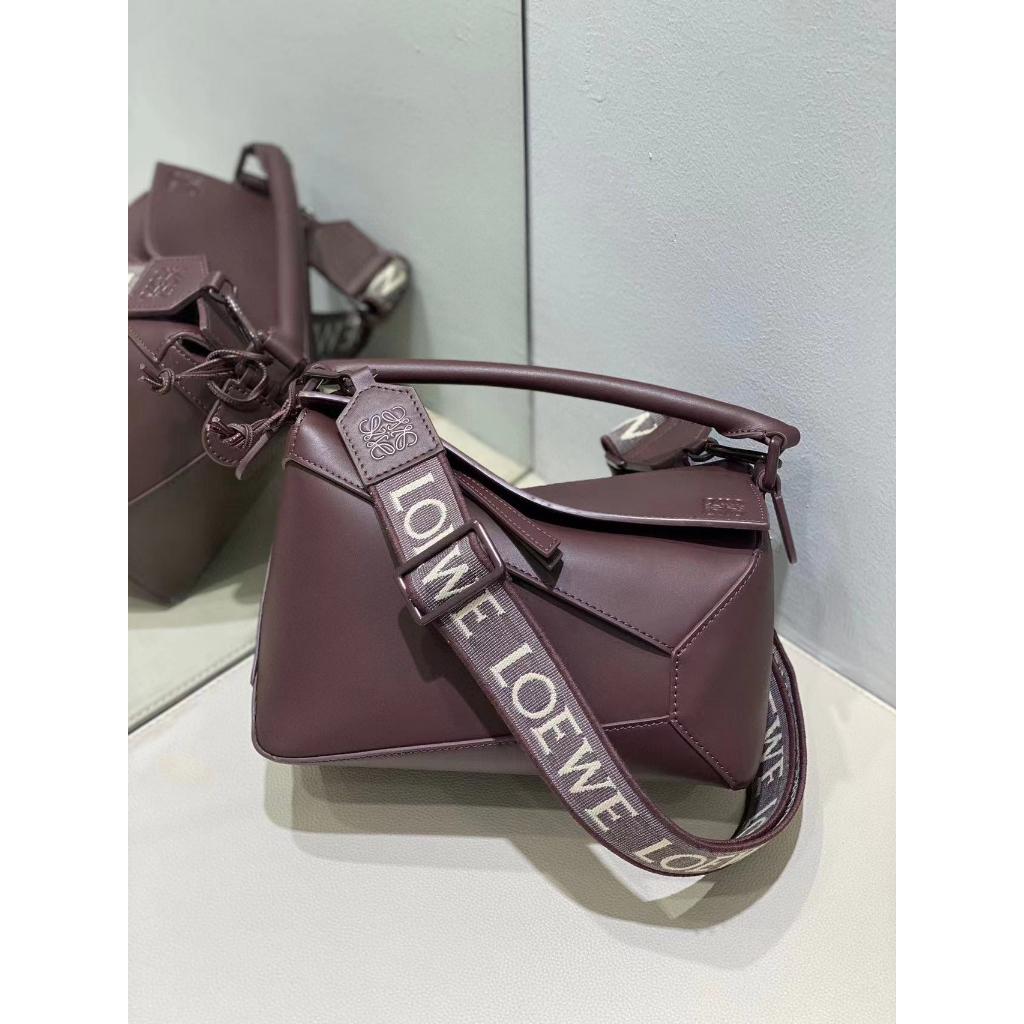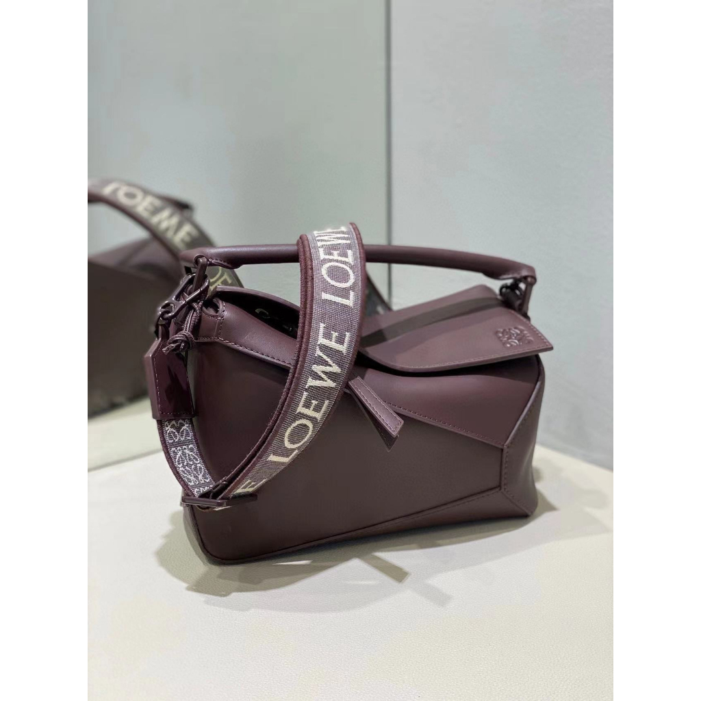 7.5 Best quality single color glaze Puzzleee geometric bag made of satin cowhide material, handbag. Sling bag size: 24 * 10.5 * 16.5cm