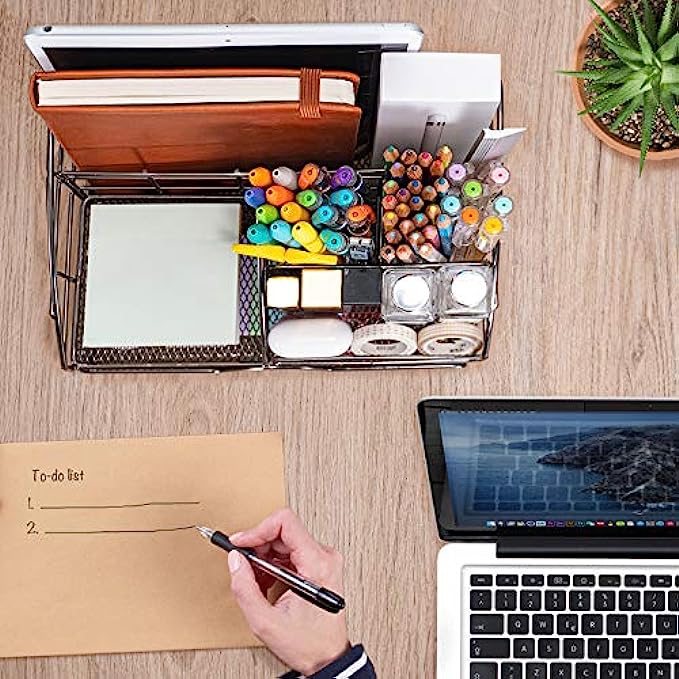 PREMIUM CRAFTSMANSHIP: ARCOBIS mesh desktop organizer is made of high-quality metal with a durable rust-resistant coating. The rounded edges give your workspace a more refined look and ensure its safety. The combination of wire mesh and black, with enhanced metal rims and stylish appearance is what makes your desk stand out!