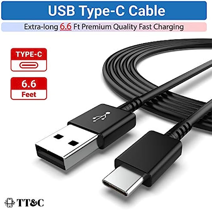 Adaptive Fast Charger Kit with USB Type C Cable 6.6ft Compatible with Samsung Galaxy S8/S8 Plus/S9/S10/S10 Plus/S10E/ S20/S20 Plus/S21/S21 Ultra/S22/Note 8/Note 9/Note 10/Note 20 2-Pack