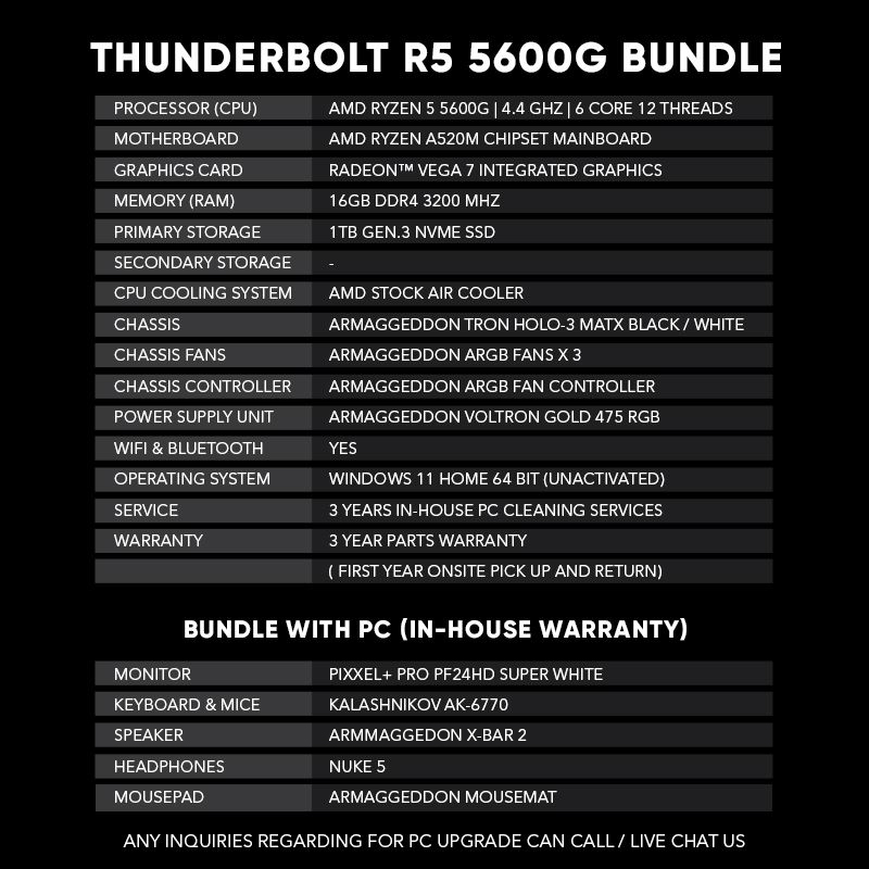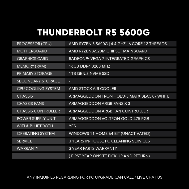 Armaggeddon Thunderbolt R5 5600G | Best Entry Level for Gaming and Office | 16GB RGB RAM | 1TB SSD