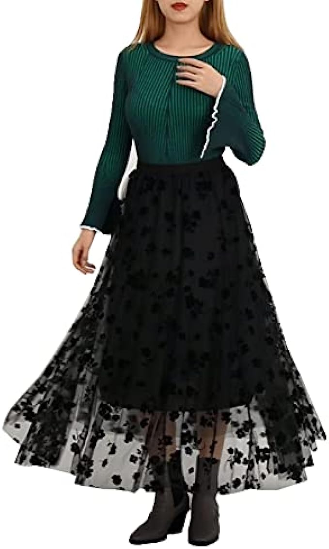 Elastic,Polyester,Mesh Pull On closure Hand Wash Only ✅ Fabric: Made from high quality polyester. Soft and smooth, lightweight and airy, The midi skirt with a soft lining , cute pleated flared design for a classic look, also with high stretch elastic waistline for a comfortable fit. ✅ Features: Pull on closure, 3 Layers, High Elastic Waist, 3D Floral print, Ankle Length. Casual tutu tulle skirt, easy to put on and take off. ✅ Style: 3D floral pattern makes this midi skirt looks unique and elegant, Midi length skirt, under the knee length, The skirt is perfect for spring, autumn and winter, easy to match all kinds of tops for different occasions. ✅ Occasion: It's classic pleated maxi skirt for you to wear in different occasions, as a casual, travelling, to work, night out, party and date, or other special occasions ✅ NOTICE: Before order, please carefully read the Size Chart Shown in Pictures