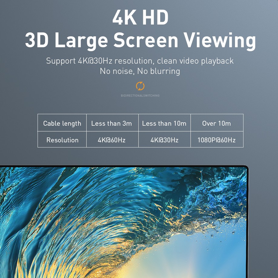 Baseus HDMI Splitter 4K 60Hz Bi-Direction HDMI Switch 1x2/2x1 HDR HDMI Audio Adapter for PS4 TV Box HDMI Switcher