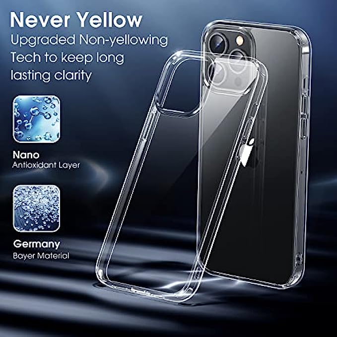 • [Crystal Clear & Never Yellow]: Using high-grade Bayer's ultra-clear TPU and PC material, allowing you to admire the original sublime beauty for iPhone 13 Pro Max while won't get oily when used. "Never yellow" thanks to the nano-grade diamond anti-oxidation coating which can effectively resist 99.9% of yellowing caused by ultraviolet rays and sweat.