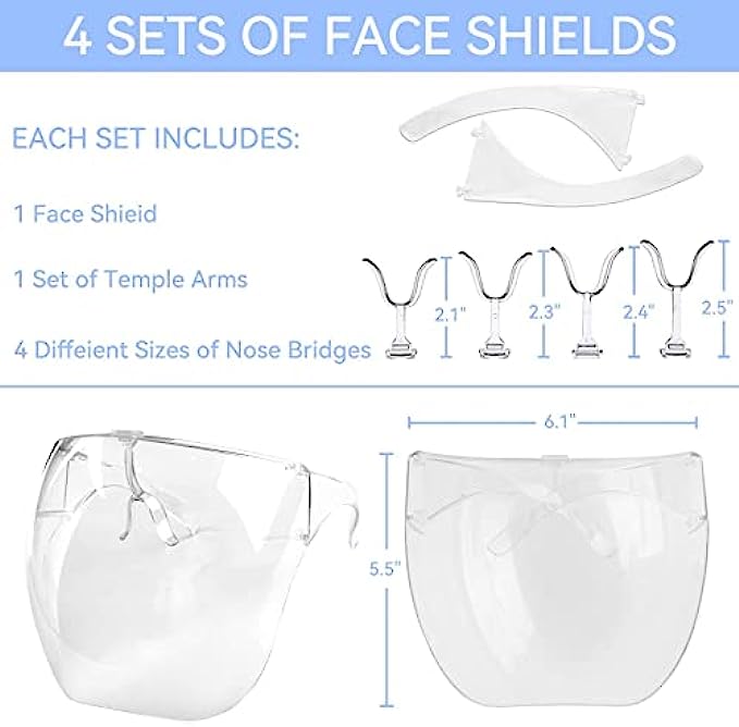 【Face Shields with Glasses 4 Pack 】: Face shield mask comfortable,stylish, and sanitary premium protective face shield visor glasses. Made with durable scratch-resistant thick polycarbonate plastic. face sheild/goggles masks with shields plastic mask shield face shield glasses plastic shield