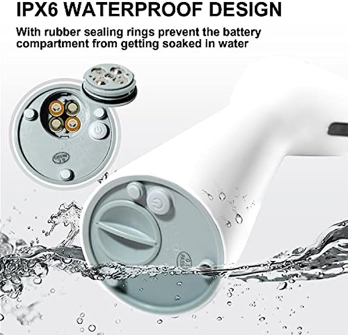 ?【Waterproof for Easy Cleaning】The smart soap pump adopt IPX6 waterproof design, with waterproof silicone compartment to ensure higher battery safety. You can rinse the pump in the sink to keep it clean. It's suitable to be placed in the kitchen, bathroom, hospital and school...