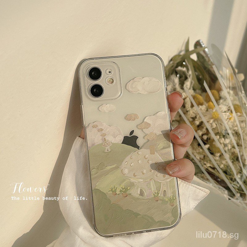 Gentle Green Hill 12Promax Apple 13 Phone Case Oil Painting 11 Protective Cover 14plus for Xs Painted