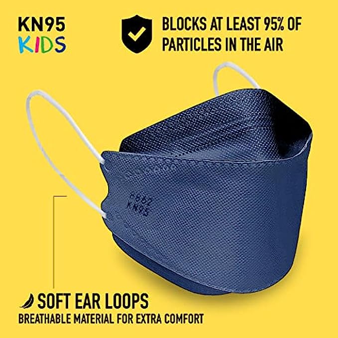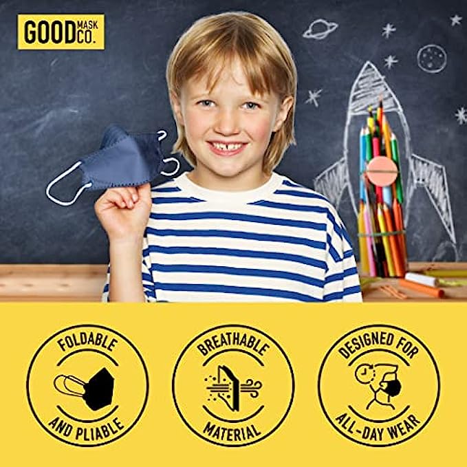 Good Mask Co. Good Comfort Kids KN95 Face Mask, Disposable KN95 Face Mask, Folding, Comfortable Face Masks, Bulk Face Masks (10 Pack of Masks, Blue)