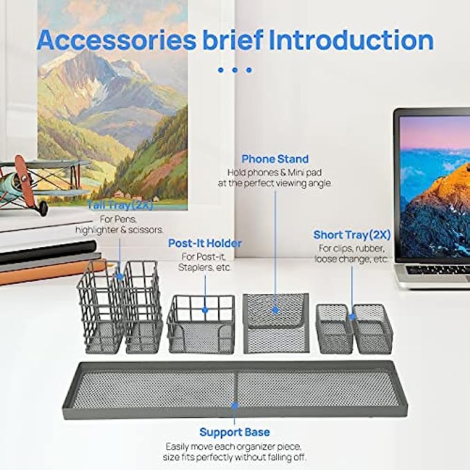 ❤ 【Include】 2 pen holders, 2 clips trays, 1 phone stand, 1 card holder and 1 support base
