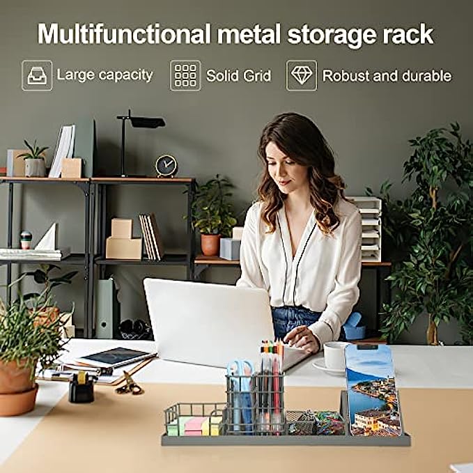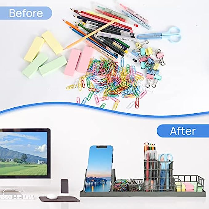 ❤【Stylish Designed】7 divided compartments to rearrange your office supplies: including your phone, pens, sticky notes, paper clips, and more, in one spot. Save time on the desk to find things. Clean and tidy work environment can improve work efficiency.
