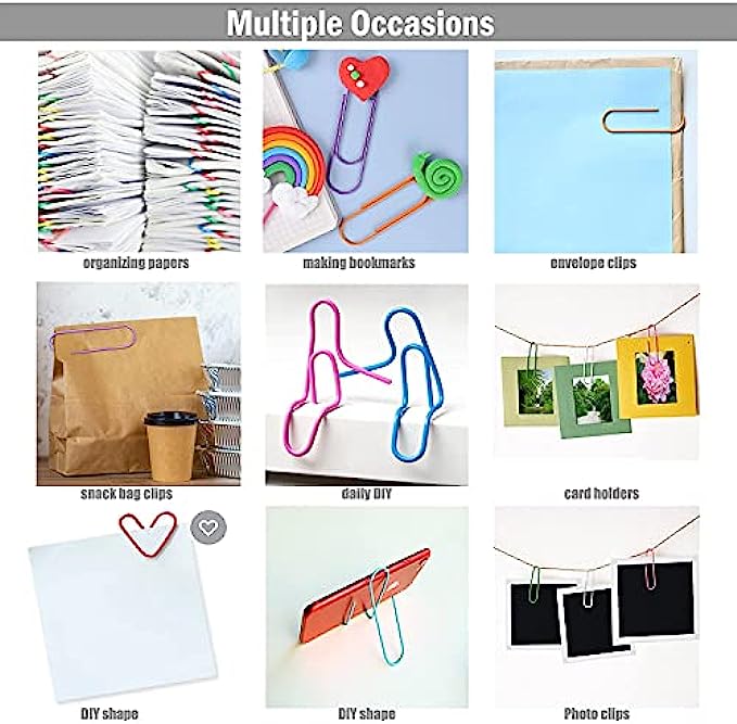 【Widely application】These colored clips ideal for DIY ,organizing papers, documents, brochures, business cards, recipes, photo album clips, business card holders and envelope clipsand more.