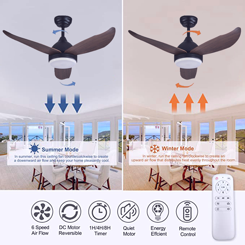 MOSS DC Motor Ceiling Fan Ceiling Fan With Light 3 Tone LED Light Kit And Ceiling Fan Remote