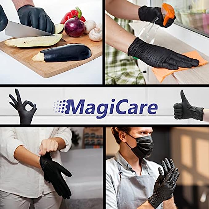 • ?FOOD SAFE: These food safe gloves are ideal for food prep and handling fruits, veggies, meat, etc. MagiCare’s Nitrile Gloves are also a great option for cleaning, at work, around the house, and much more!