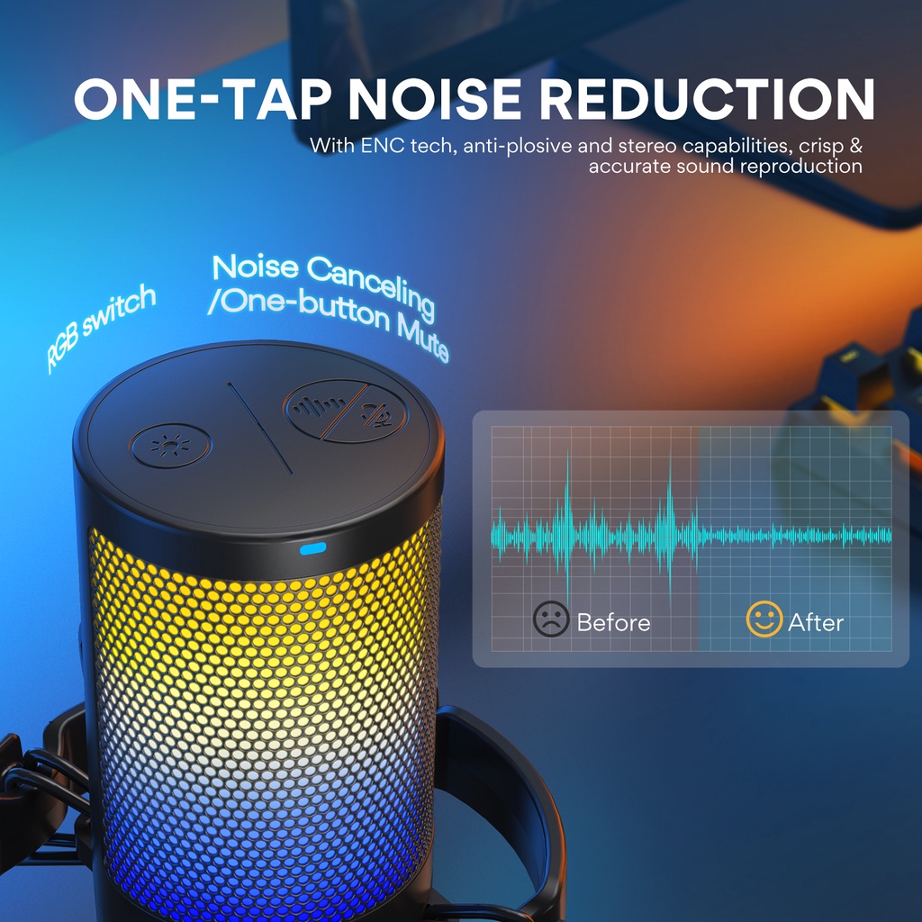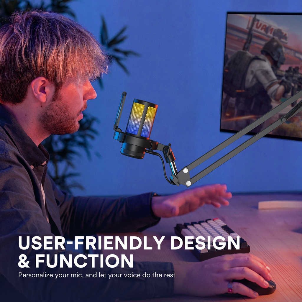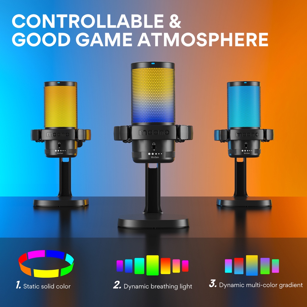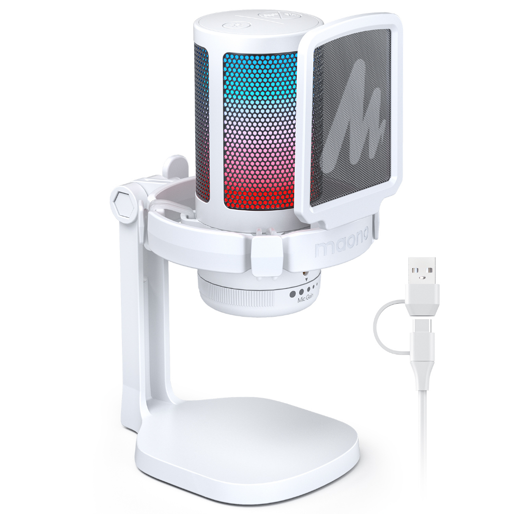 Maono DGM20 RGB condenser recording microphone with gain adjustment and software setting functions is suitable for computers, mobile phones, gaming, live streaming