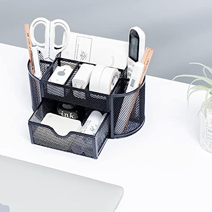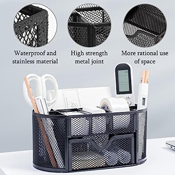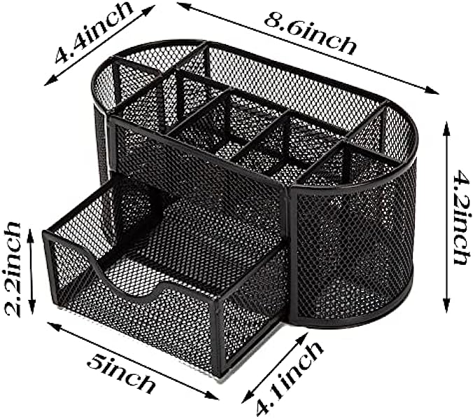 Function: our mesh pen holder has 8 compartments and a drawer, which can be used for classification and storage, and can make your desktop items more orderly.