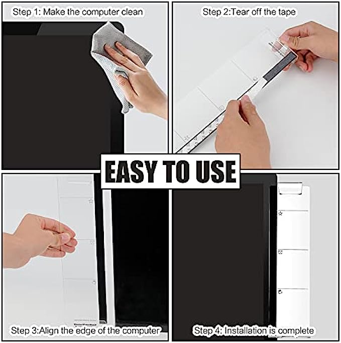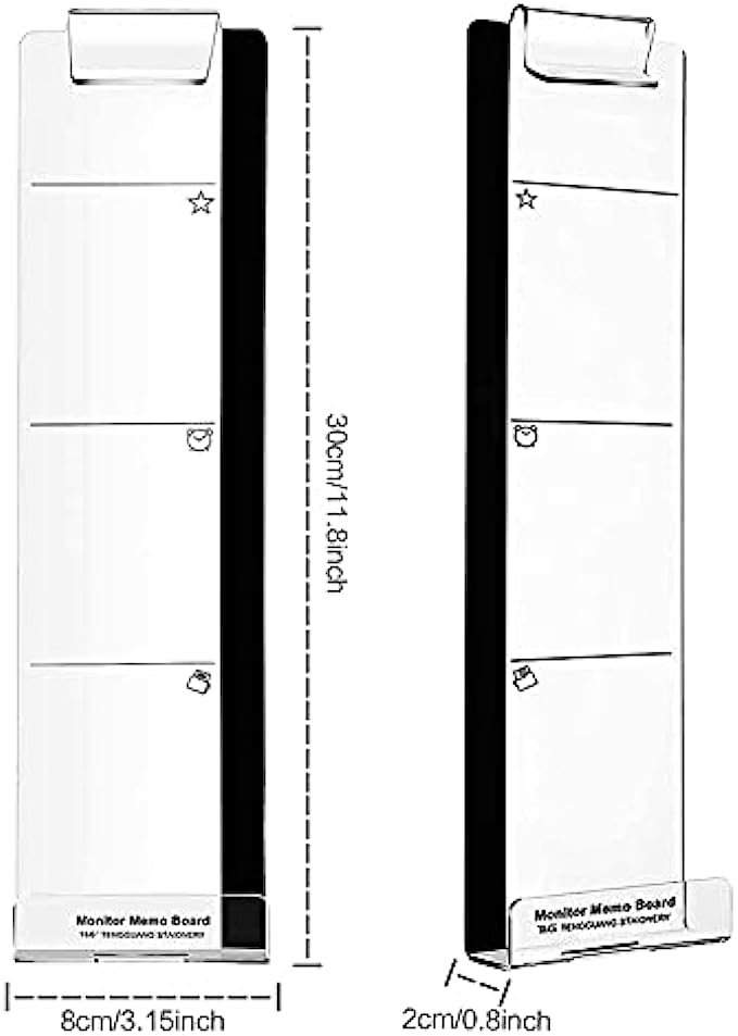 DURABLE MATERIAL: Display sides panel is made of transparent acrylic material, durable, simple and stylish. Monitor memo board is easy to fit, just tear off the sticker and hang it on the edges of both sides of the monitor screen.