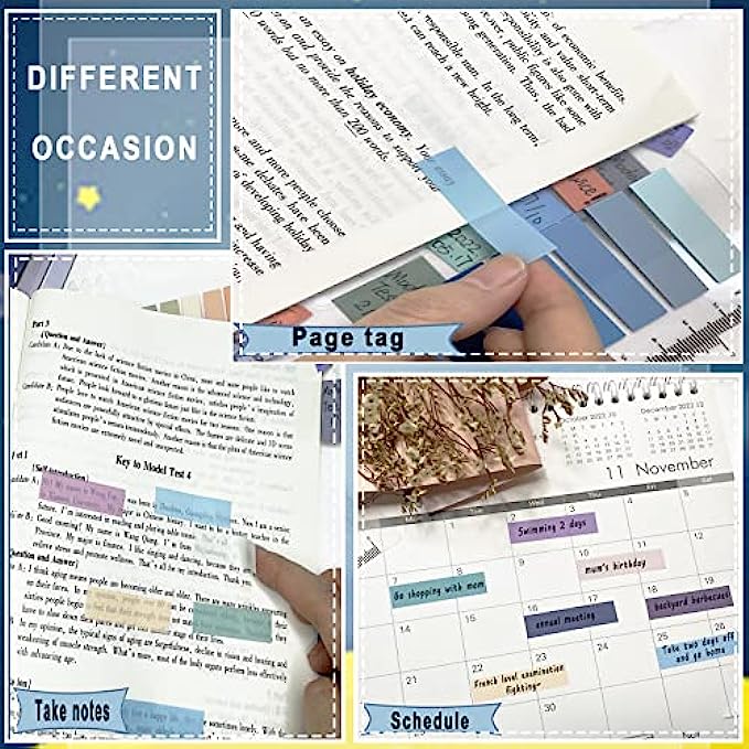 WRITABLE & REPOSITIONABLE:They had a smooth surface, easy to remove and reposition, you can use ballpoint pen or pencil to write and marked without damage to books.