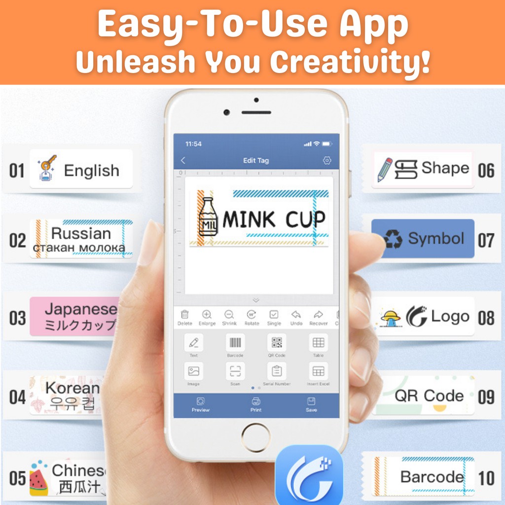 Niimbot Portable Bluetooth Thermal Label Printer Sticker Maker D11 Series + White Sticker Roll