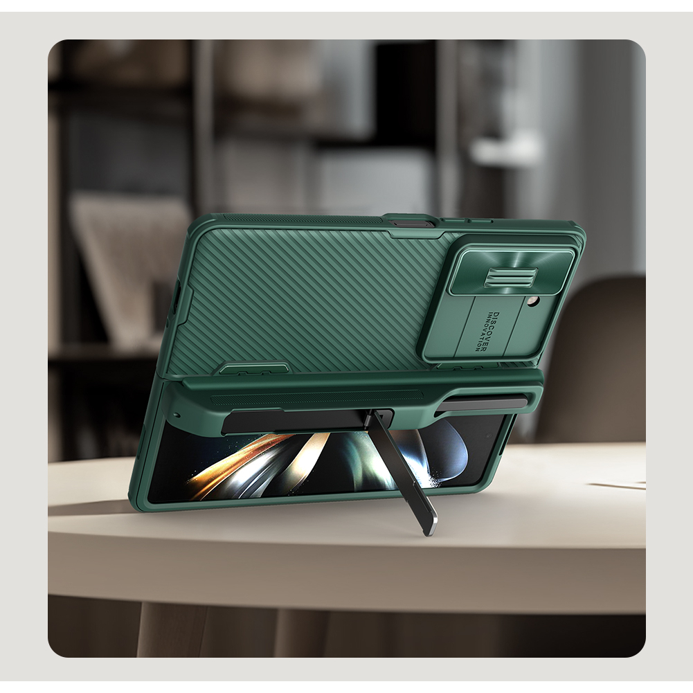 Nillkin Compatible For Samsung Galaxy Z Fold 5 CamShield TPU PC Lens Slide Cover Camera Protect Bracket Phone Case Casing Protective Shell With Pen Pencil Holder