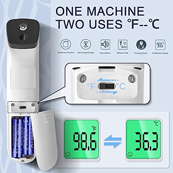 Multi-Mode Thermometer for All Age: The thermometer for fever reads temperatures in ear and forehead for all ages, the temperature thermometer for adults, kids and infants. And it can also measure the object(water) temperature and room temperature. An ideal choice for public, hospitals, restaurants, schools, companies, homes, etc. (℃ and ℉ are easily switchable.)