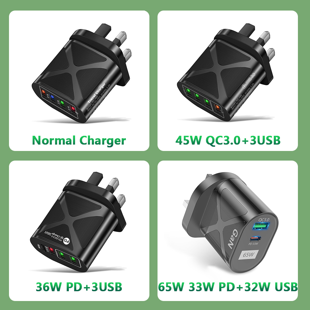 Normal/45W/36W/65W GaN Fast Charge Adapter For Mobile Phone Type C PD Quick Charger US/UK/EU Plug