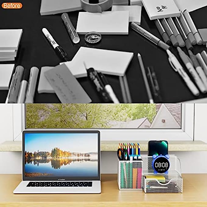 【STYLISH MESH DESK ORGANIZER DESIGN】We use superior modern technology to make the construction of office supplies desk organizers much sturdier and more durable. The reliable, high-quality metal mesh design looks more elegant than other mesh or plastic office supplies organizers. There are four non-slip pads on the bottom of the office organizer to protect your desk from scratches