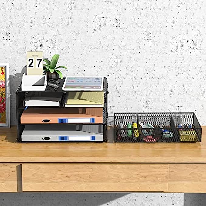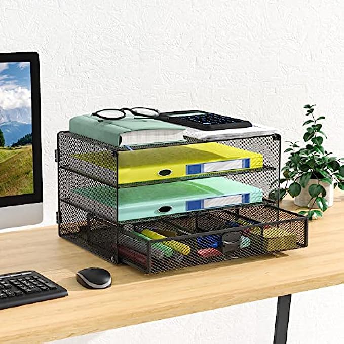 Paper Letter Tray Organizer, Mesh Drawer Desk Organizer DIY Storage Rack Stand Shelf for Office Accessories and Small Supplies (DO002-B), Black by WALI