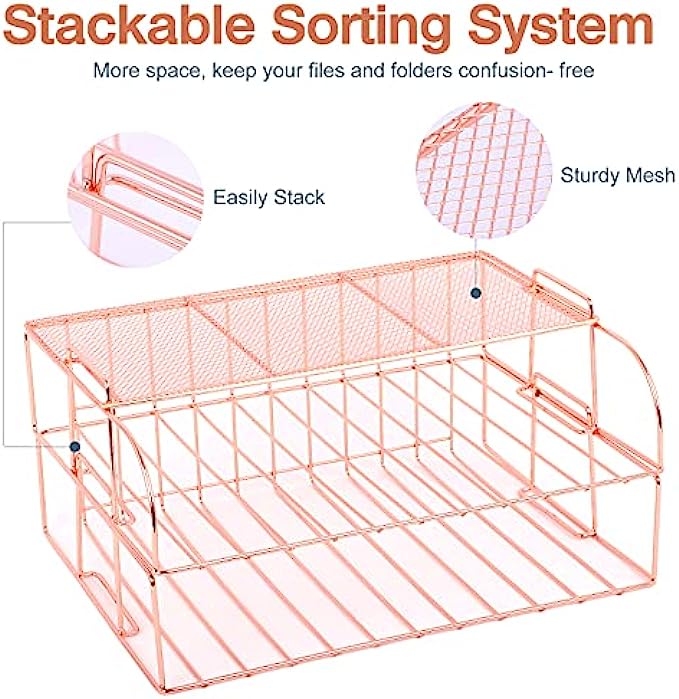 ▶Perfect Gift Choice- This Rose Gold Letter Tray is the most beautiful gift you could possibly give to anyone. Perfect gift for colleagues, teachers, friends. Elegant rose gold look lights up the personal home office space instantly, girls would love it.