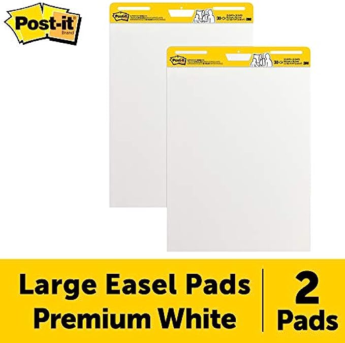 Post-it Super Sticky Easel Pad, 25 in x 30 in, White, 30 Sheets/Pad, 2 Pad/Pack, Large White Premium Self Stick Flip Chart Paper, Super Sticking Power (559)
