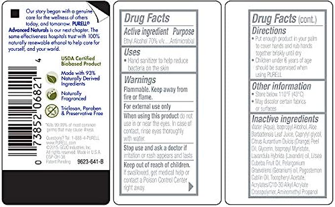Case includes: 6- Purell Advanced Hand Sanitizer Naturals -2 fl oz Pump Bottles