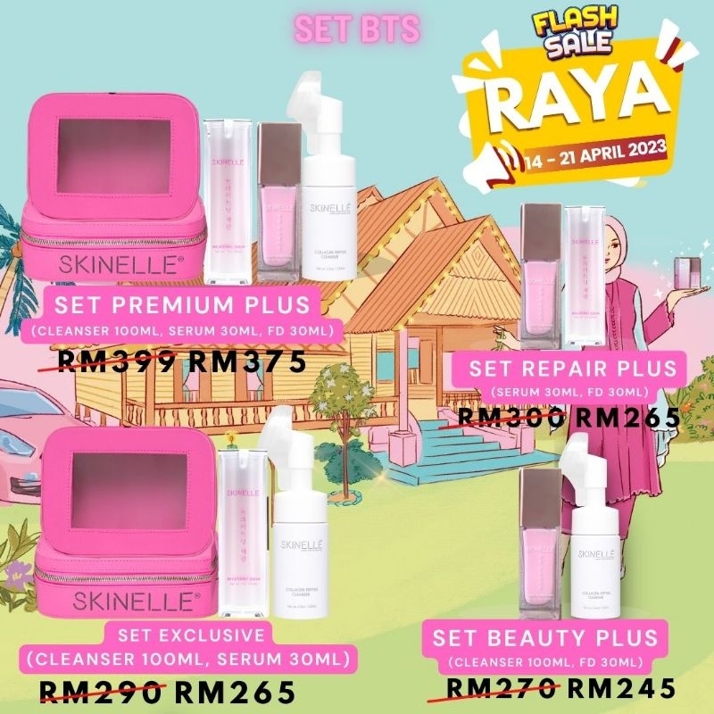 SKINELLE (No Bag) Premium set collagen peptide Jerung Premium Set Bunga Korea BTS Pink