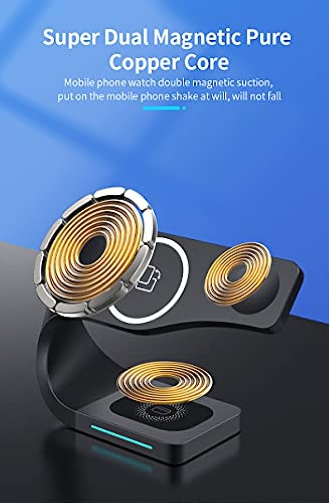 【3 in 1 Wireless Charger】: The wireless charger can charge for phone, apple watch and Airpods. It's suitable for Apple AirPods 1/2/AirPods Pro, and Apple Watch Series 6/5/4/3/2/1/SE. Support for hybrid charging between Apple and Android.