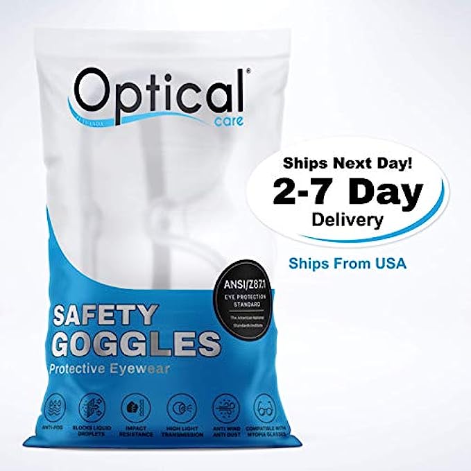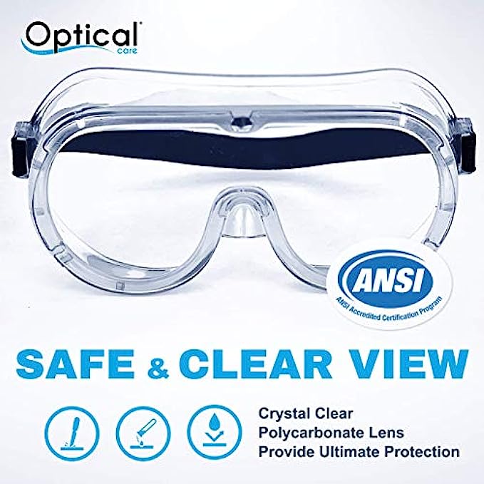 CRYSTAL CLEAR LENS - Eye protection with a 180 degree field of view, are splash-proof, anti-fog, fits over glasses, and Blocks 99% UV light. Medical Safety goggles provide protection from gasses, chemicals, splashes, droplets, and air-born aerosol particles.