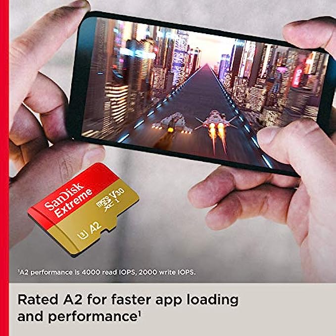 • SanDisk 256GB Extreme MicroSDXC UHS-I Memory Card - C10, U3, V30, 4K, A2, Micro SD - SDSQXA1-256G-GN6MN