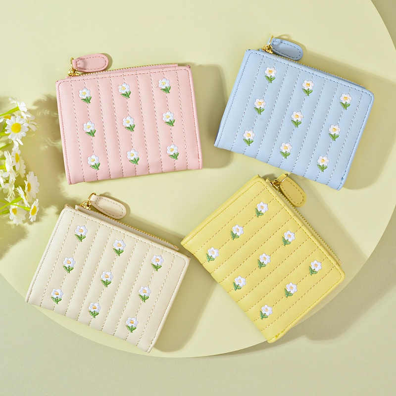 SeaGloca New Korean Version Embroidered Simple Cute Cropped Bifold Wallet For Woman No.1371