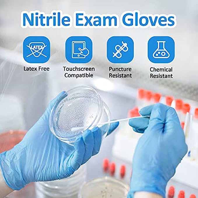 LATEX-FREE: Free of natural latex rubber, these latex-free nitrile gloves reduce allergic skin reactions to latex and protein; these non-latex gloves are stretchy and durable, and more puncture-resistant than similar latex gloves.