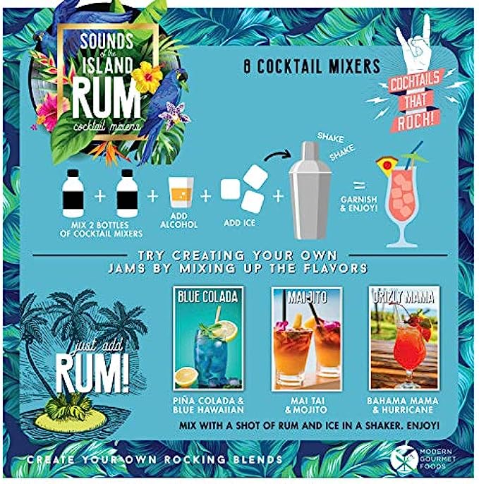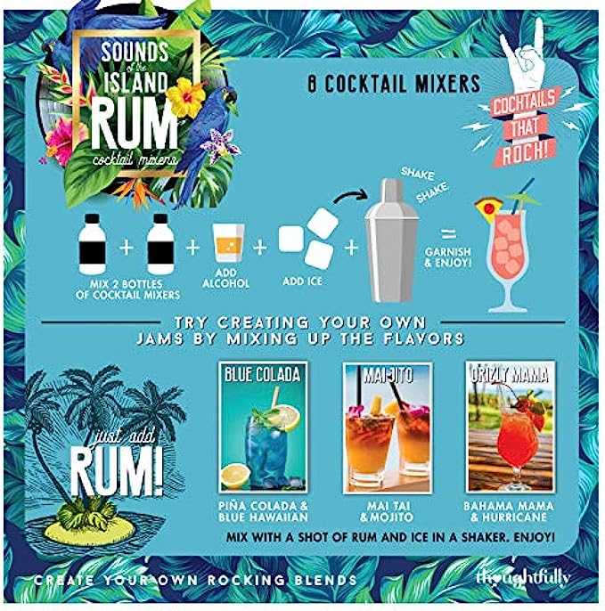 Thoughtfully Gifts, Greatest Hits Cocktail Mixers for Rum Gift Set, Flavors Include Rum Punch, Mai Tai, Mojito and More, Pack of 8 (Contains NO Alcohol)