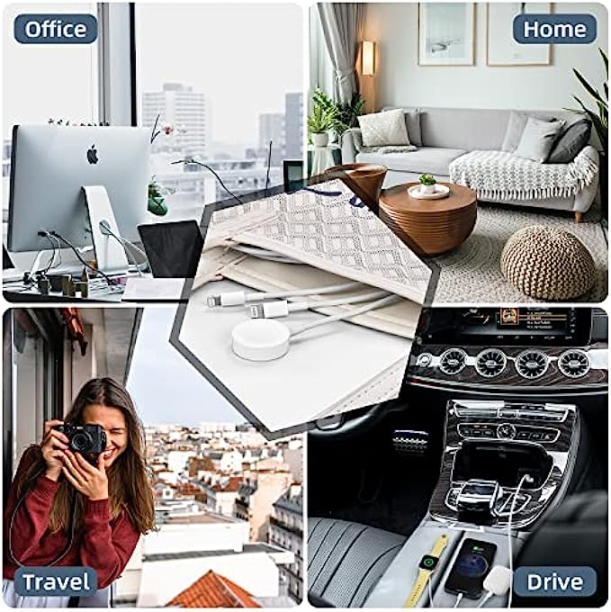 3 in 1 Portable Design:Updated 3 in 1 design,buy one get three chargers. 4.9ft/1.5m apple watch charger cable is convenient for office/home/travel/drive.