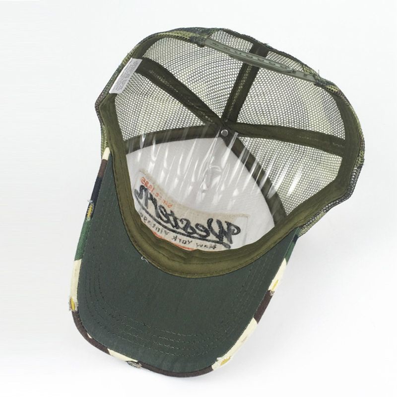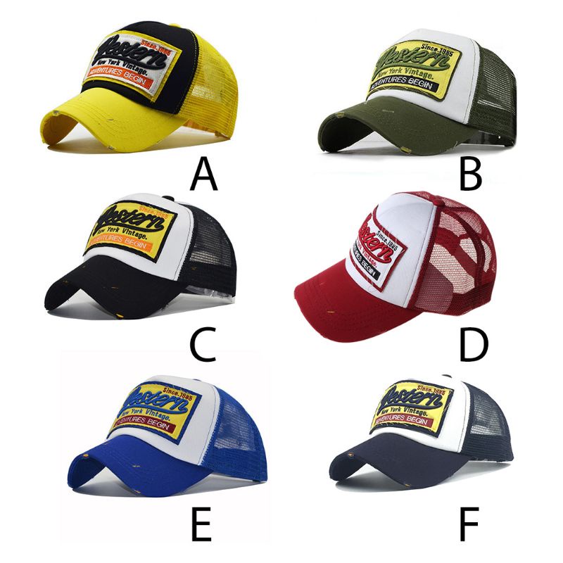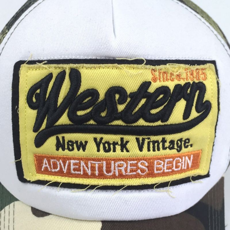 Wili Unisex Vintage Western Letters Embroidered Logo Patch Baseball Cap Breathable Mesh Back Casual Distressed Snapback Trucker Hat
