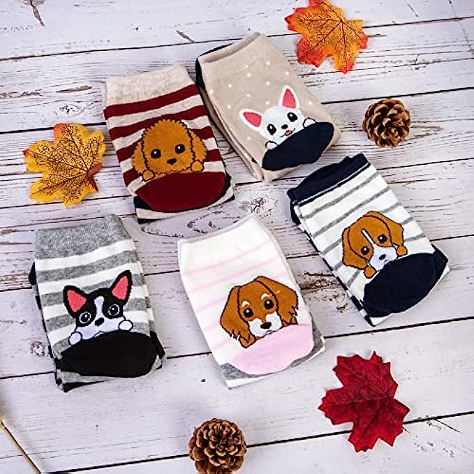 YSense Women’s 5 Pairs Dogs Socks,One Size, Mix Color 5