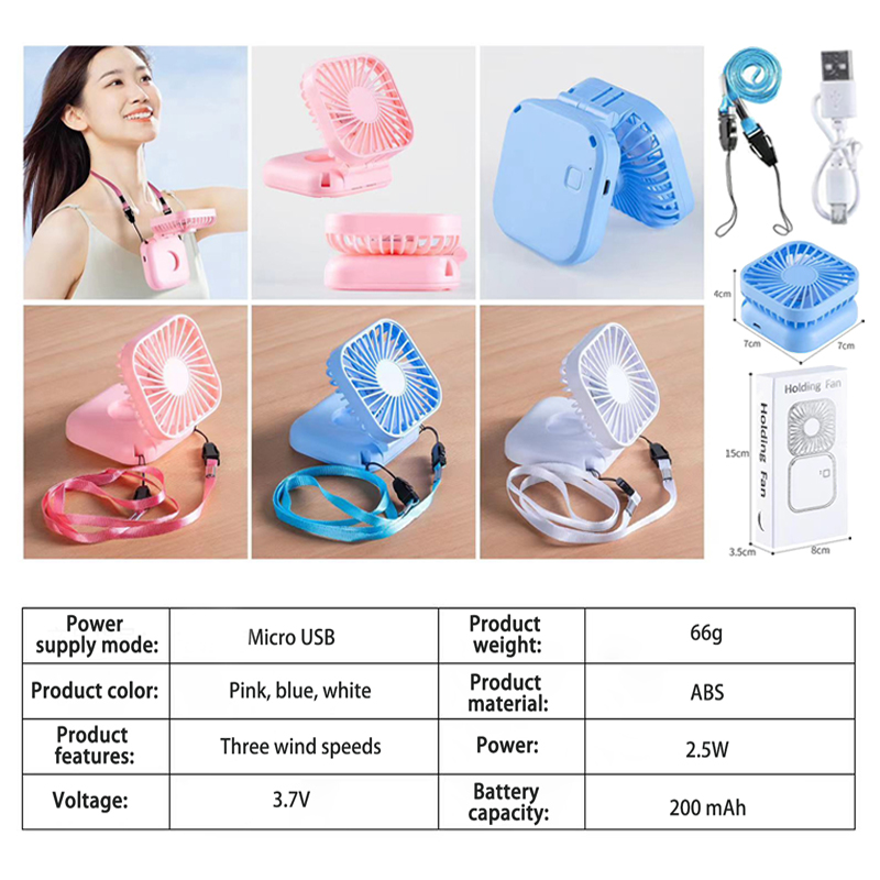 FOLDABLE MINI HANGING NECK FAN, USB RECHARGEABLE MINI FAN 3 LEVEL SPEED WIN