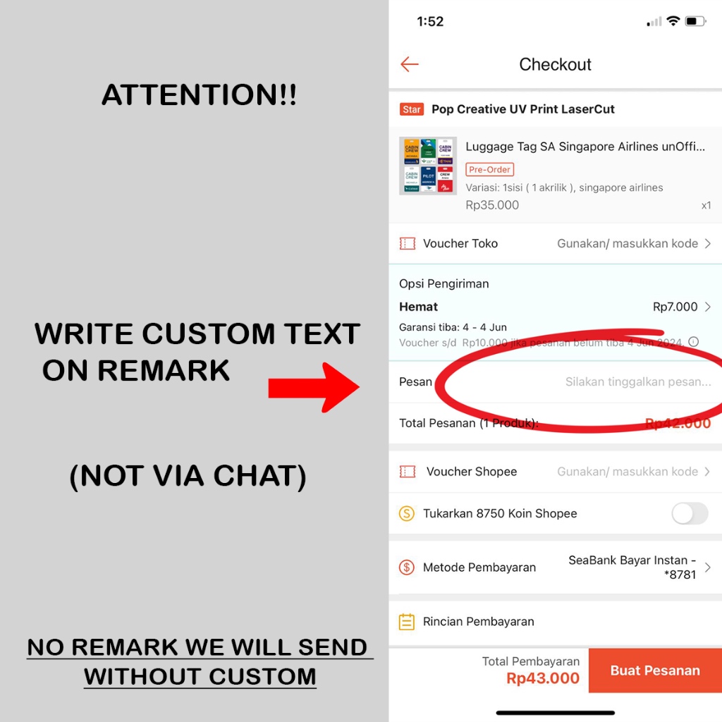 GANTUNGAN Luggage Tag SA Singapore Airlines CABIN CREW unOfficial Tag Suitcase Hanger Bag custom Name Saudia Air Asia Thai