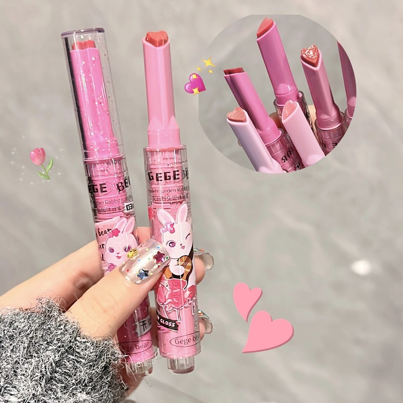 GECOMO Watery Mirror Lip Gloss, Garden Rabbit Lipstick Set, Press-on Lovely Lip Gloss
