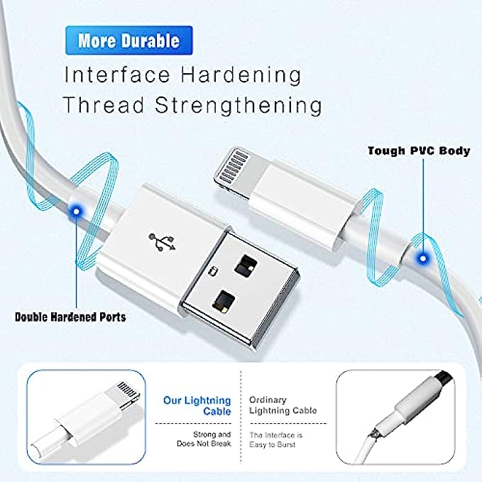 • Service & Value 3Pk 6Ft iPhone Cables:Our 6ft lightning cable is enough long to use whether in office, car or at home, you can enjoy safety fast charging anytime & anywhere. All iPhone iPad lightning cable provide 12 months professional customer service support.